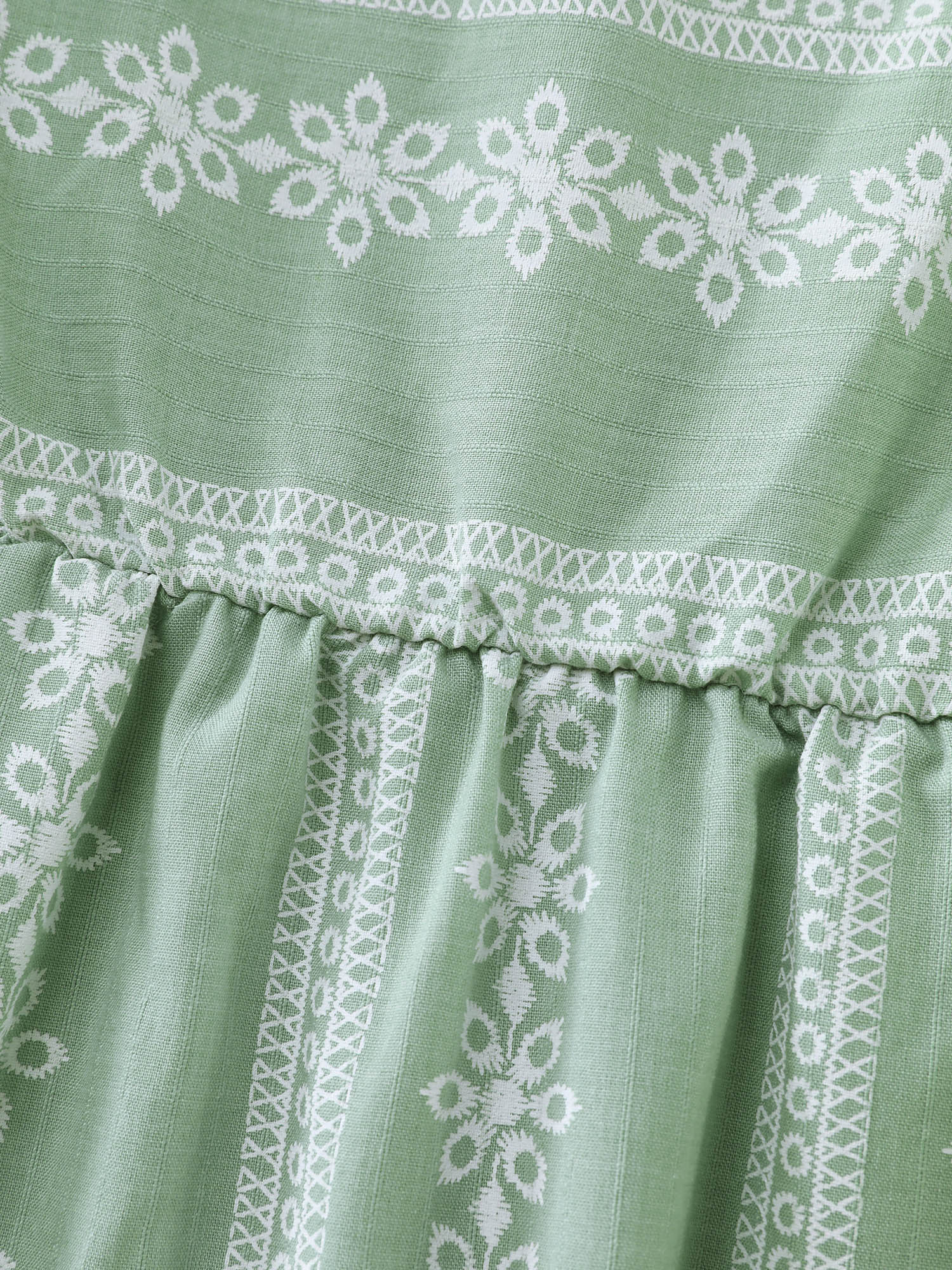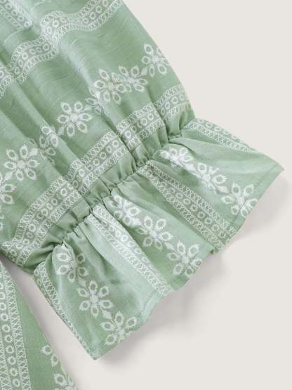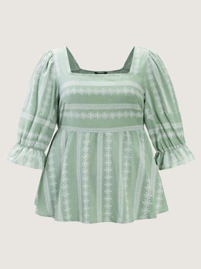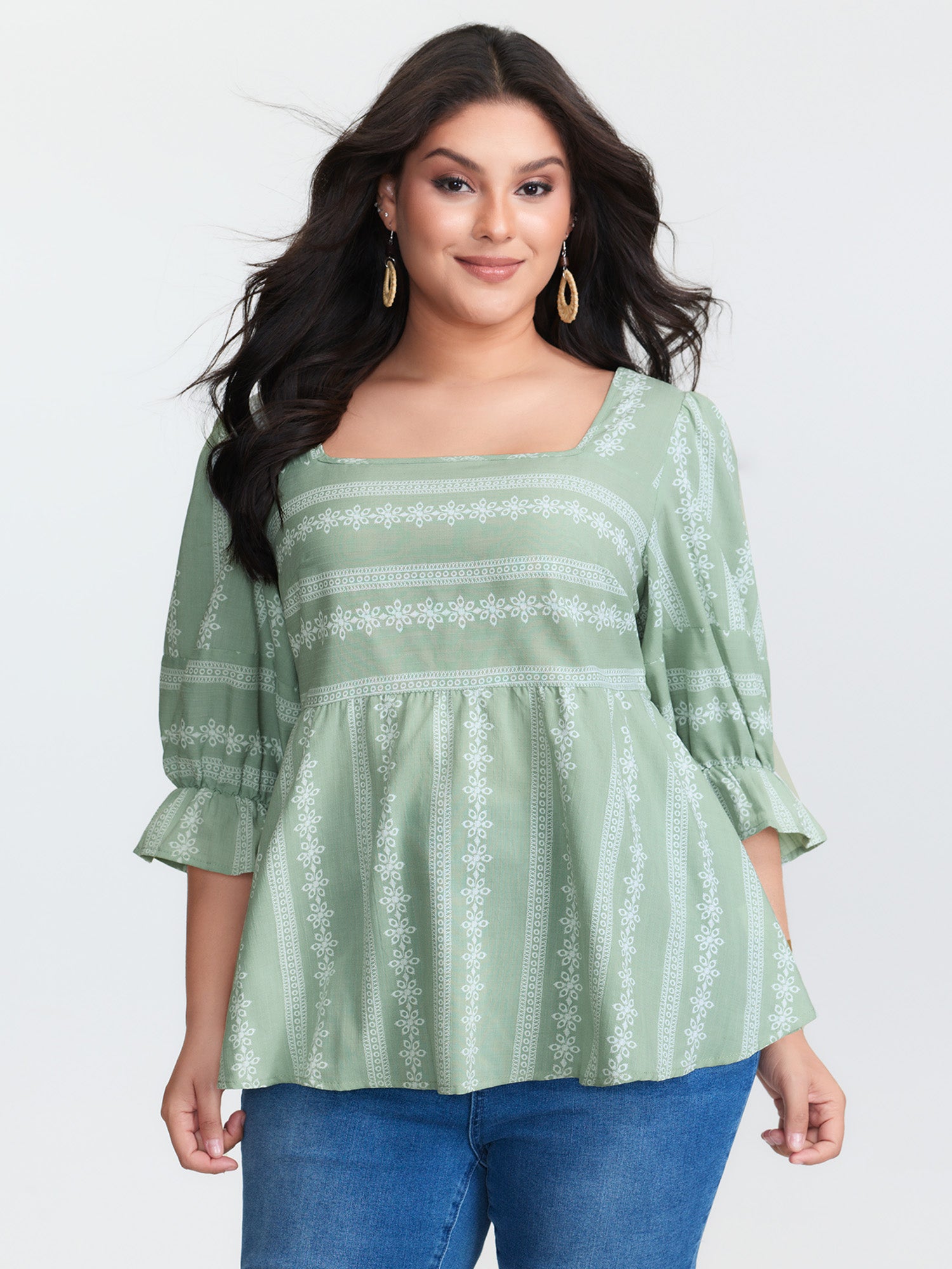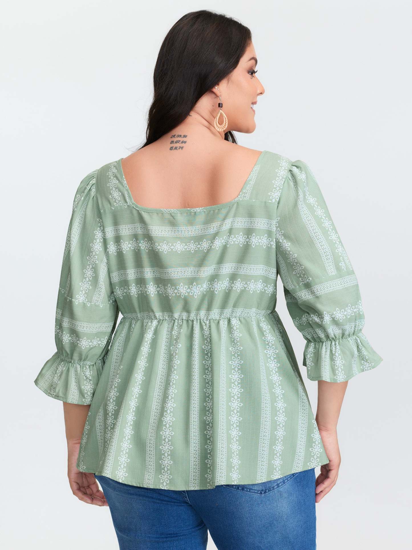 Shop Boho Stripe Print Square Neck Blouse now and redefine your style with confidence at BloomChic. Tailored for mid and plus-size women. This trendy Tops Women, sizes 10-30. Color:Green Bean;Style_2:Boho;Pattern:Bohemian print;Neckline:Square Neck;Sleeve Type:Puff Sleeve;Details:Contrast, Gathered, Ruffles;Pocket:No-pocket