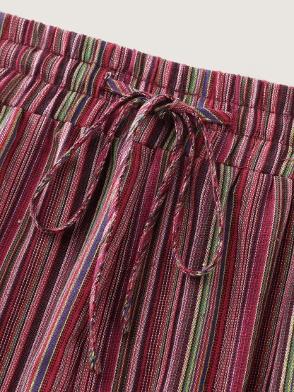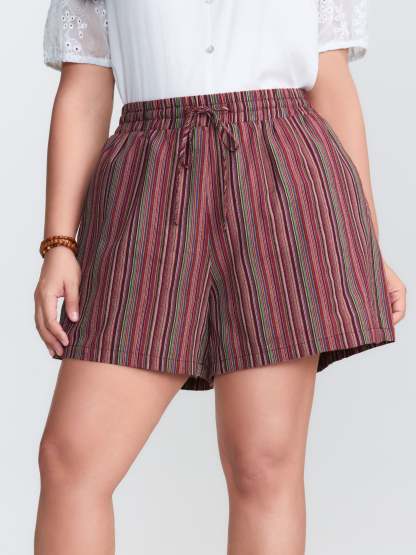 Shop Colorful Floral Striped Pockets Shorts now and redefine your style with confidence at BloomChic. Tailored for mid and plus-size women. This trendy Bottoms Women, sizes 10-30. Color:Maroon;Style_2:Boho;Waist Design:High Rise;Prints:Stripes;Details:Elastic Waist;Pocket:Side seam pocket;Belt:No-belt;Closure Type:Non