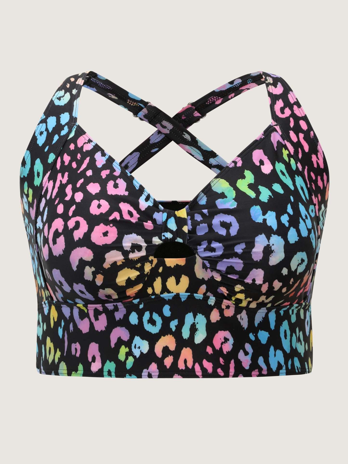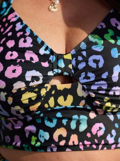 Shop Colorful Leopard Print Cut-Out Swim Top now and redefine your style with confidence at BloomChic. Tailored for mid and plus-size women. This trendy Swimwear Women, sizes 10-30. Color:Black;Style_2:Resort;Cup Type:Removable cups;Pattern:Animal print;Details:Cut-Out;Pocket:No-pocket;Belt:No-belt;Chest pad:Removable Padding;Structural function:Adaptive-Fit;Swimsuit types:Bikini Top;Functional Fabric:UPF 50 Sun Protection,Chlorine Resistant