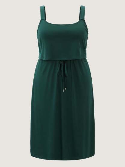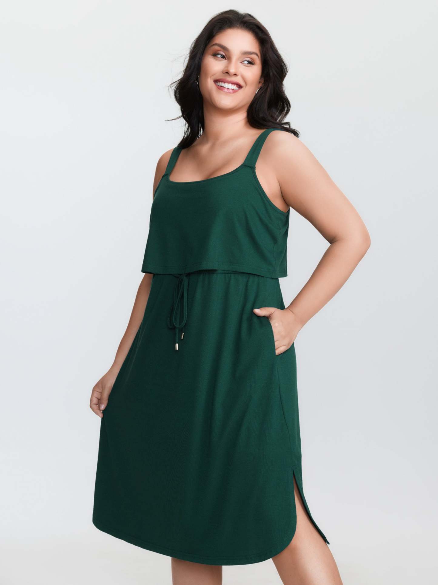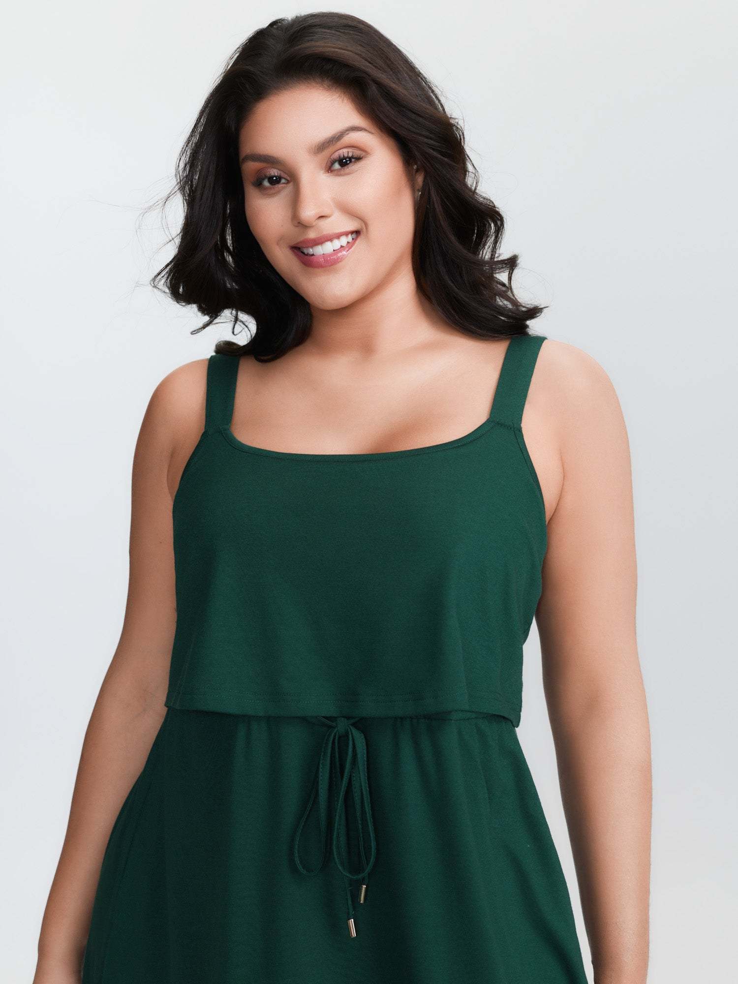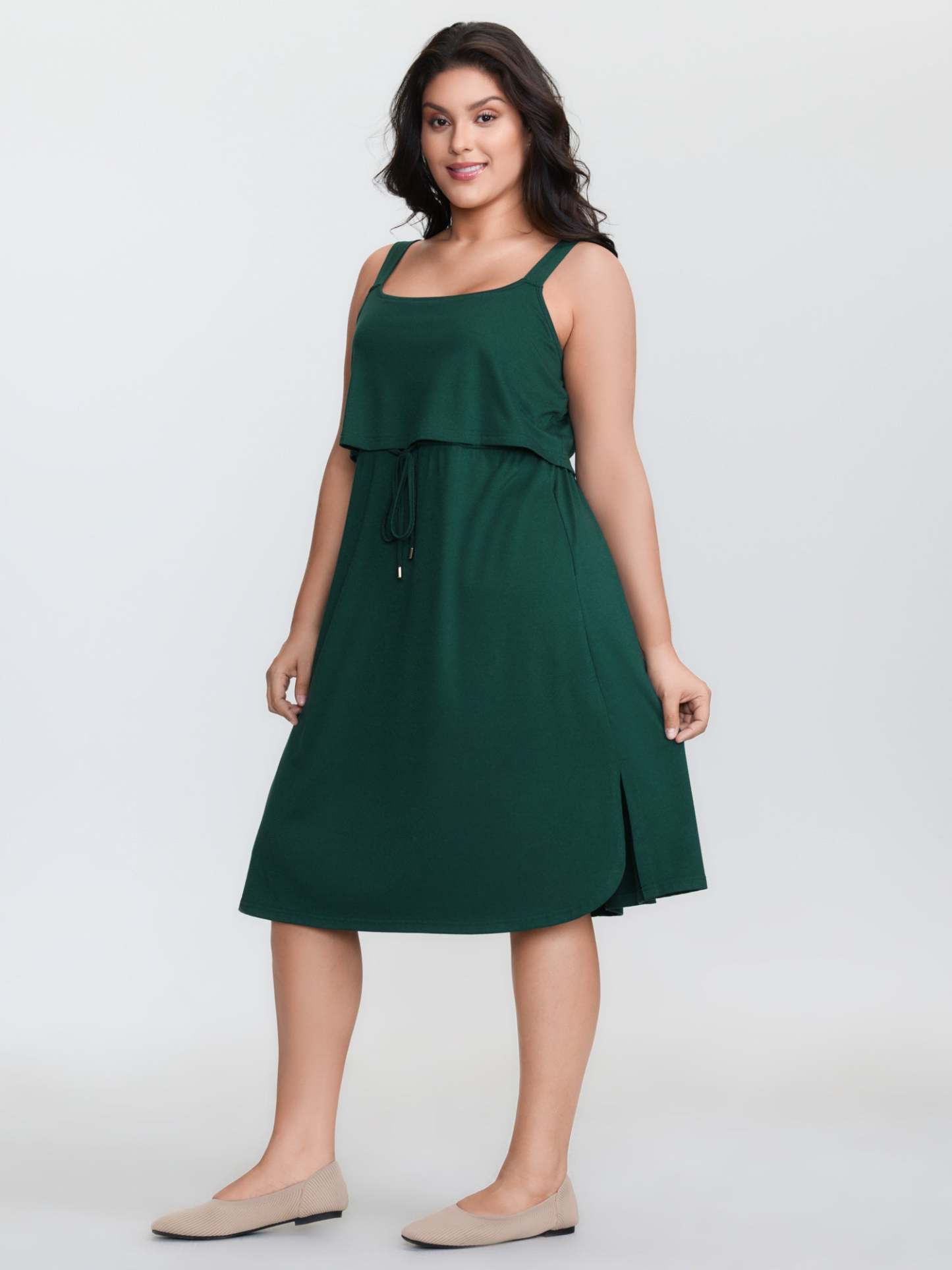 Shop Drawstring Waist Side Slit Cami Midi Dress now and redefine your style with confidence at BloomChic. Tailored for mid and plus-size women. This trendy Dress, sizes 10-30. You can never go wrong with BloomChic Dresses. Color:Dark Green;Style_2:Leisure;Neckline:Square Neck;Sleeve Type:Sleeveless;Pattern:Non;Details:Drawstring;Pocket:Side seam pocket;Belt:No-belt;Closure Type:Non