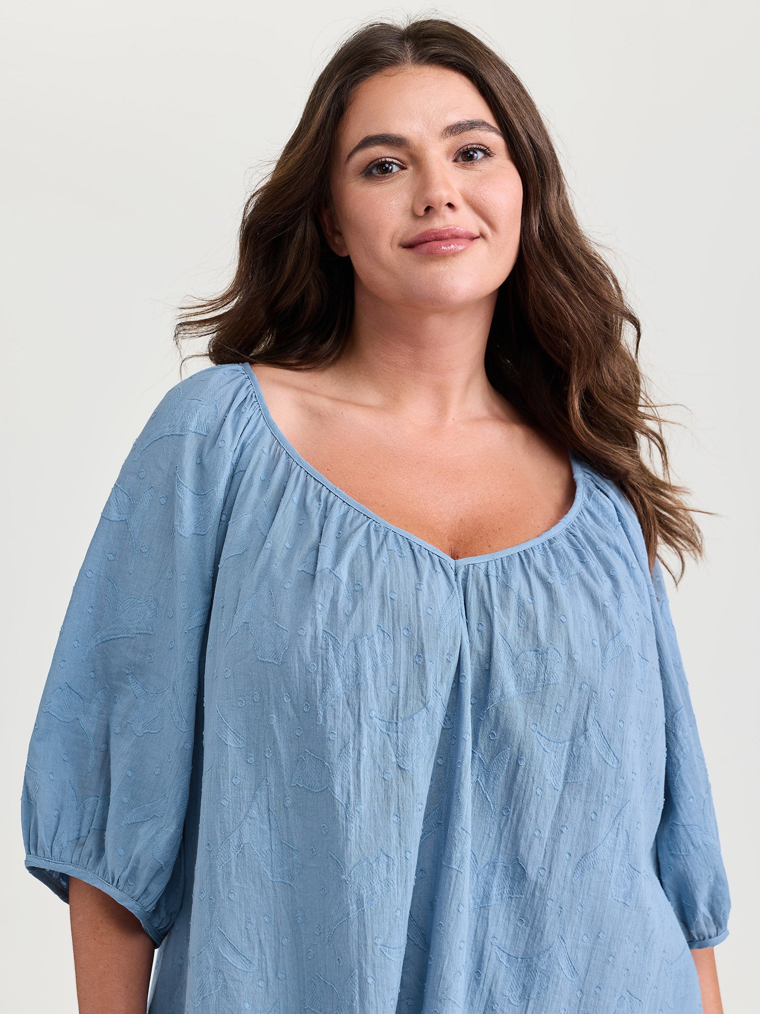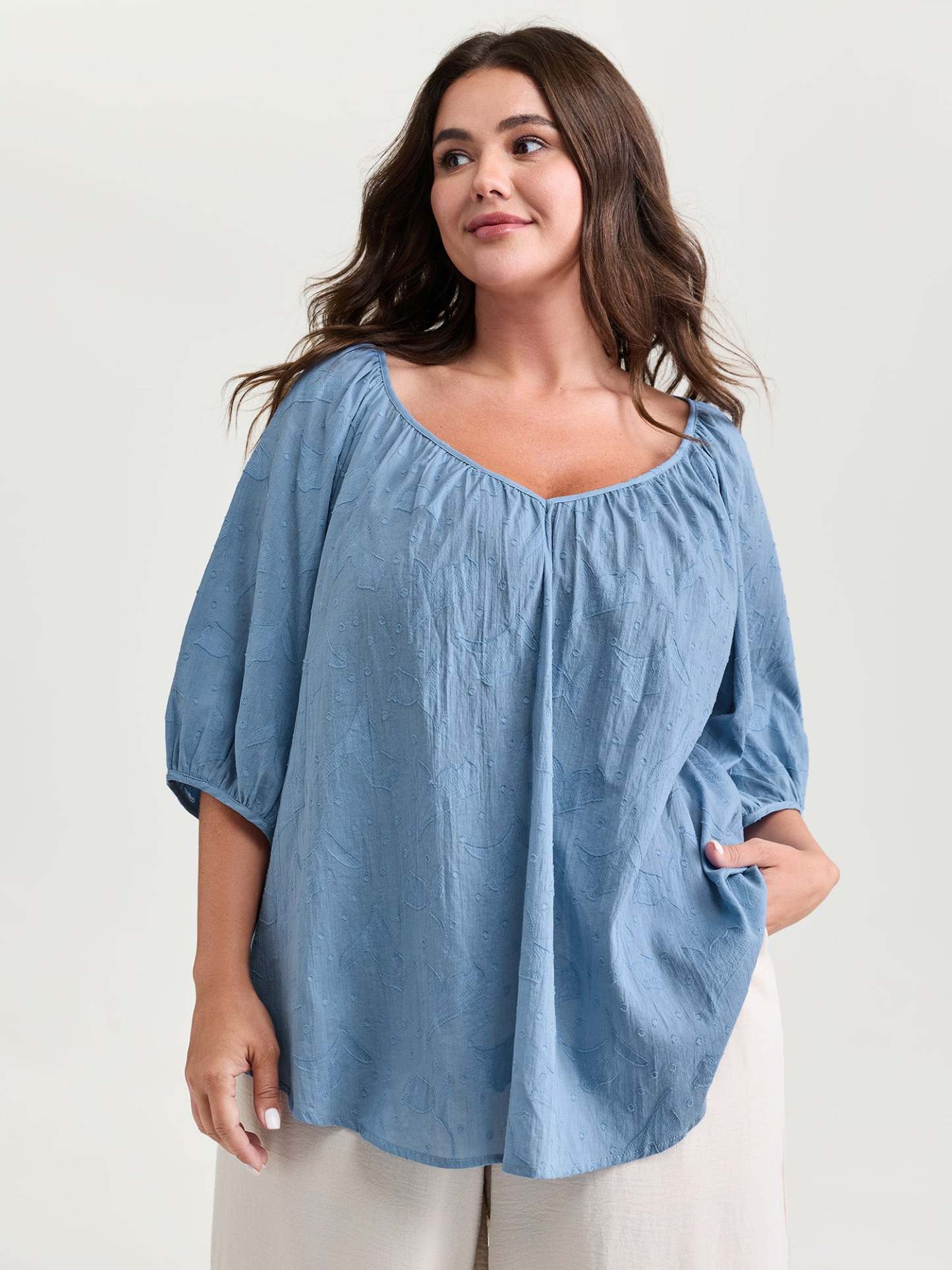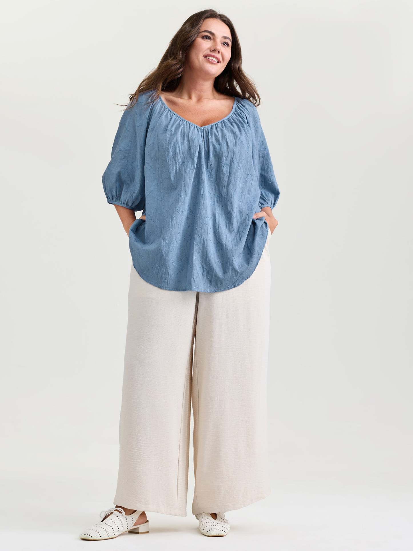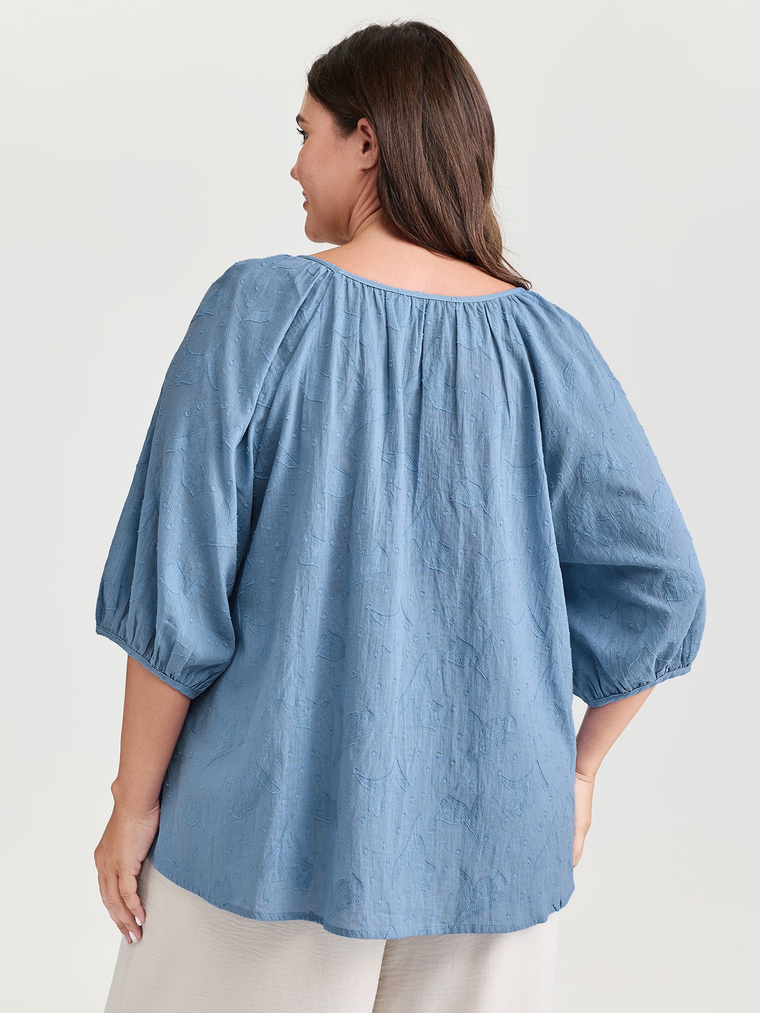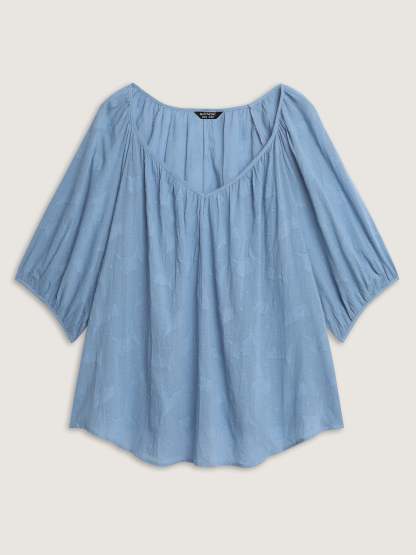 Shop Pure Cotton Jacquard Pleated Blouse now and redefine your style with confidence at BloomChic. Tailored for mid and plus-size women. This trendy Tops Women, sizes 10-30. Color:Light Blue;Style_2:Leisure;Pattern:Non;Neckline:V-neck;Sleeve Type:Lantern Sleeve;Details:Texture;Pocket:No-pocket