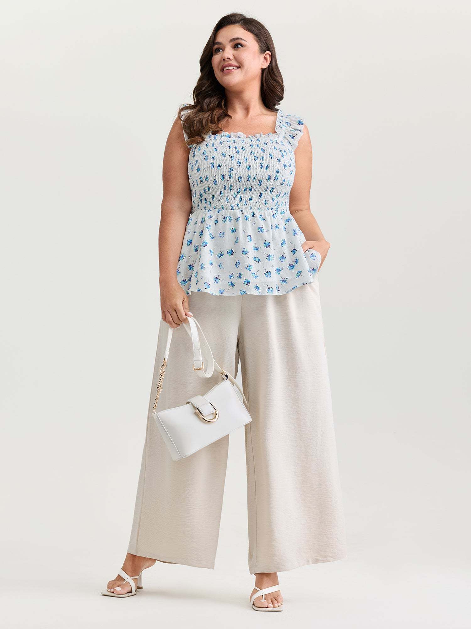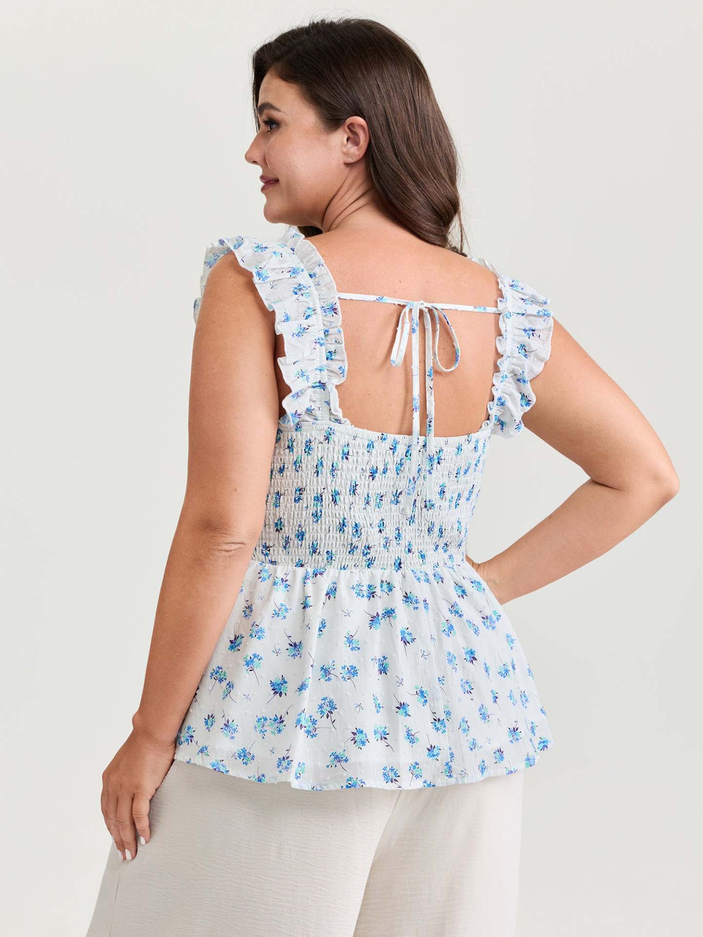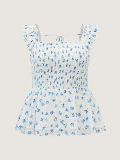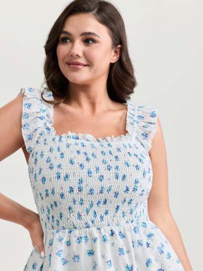 Shop Pure Cotton Textured Floral Print Tank Top now and redefine your style with confidence at BloomChic. Tailored for mid and plus-size women. This trendy Tops Women, sizes 10-30. Color:Medium Blue;Style_2:Romantic;Pattern:Ditsy floral;Neckline:Non;Sleeve Type:Sleeveless;Details:Shirred, Gathered;Pocket:No-pocket