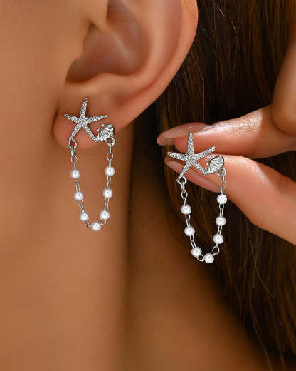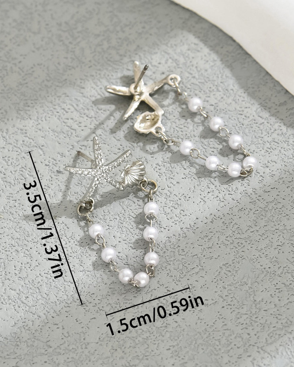 Star-Shaped Shell Pearl Stud Earrings