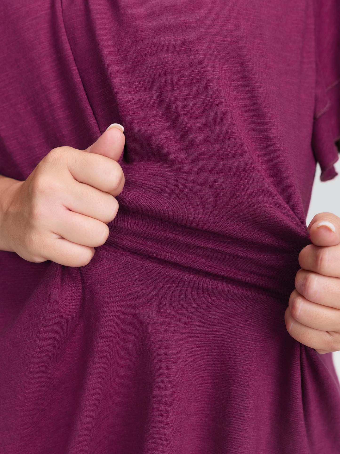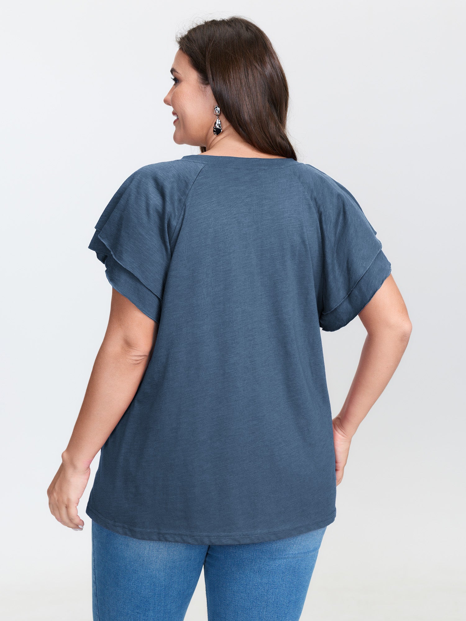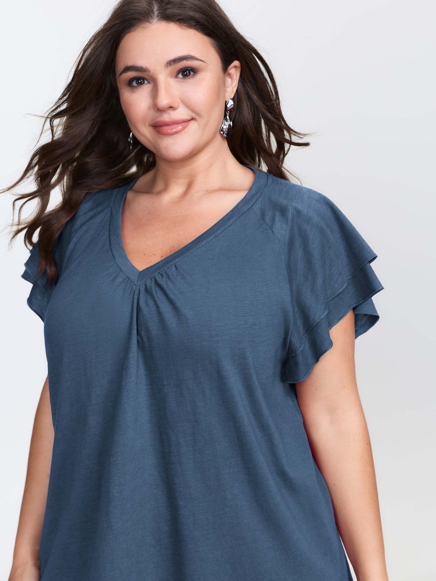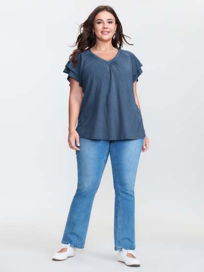 Shop Stretchy Textured Flared Sleeve T-Shirt now and redefine your style with confidence at BloomChic. Tailored for mid and plus-size women. This trendy Tops Women, sizes 10-30. Color:Red Violet, Cerulean;Style_2:Leisure;Pattern:Non;Neckline:V-neck;Sleeve Type:Cap sleeve;Details:Ruffles, Gathered;Pocket:No-pocket