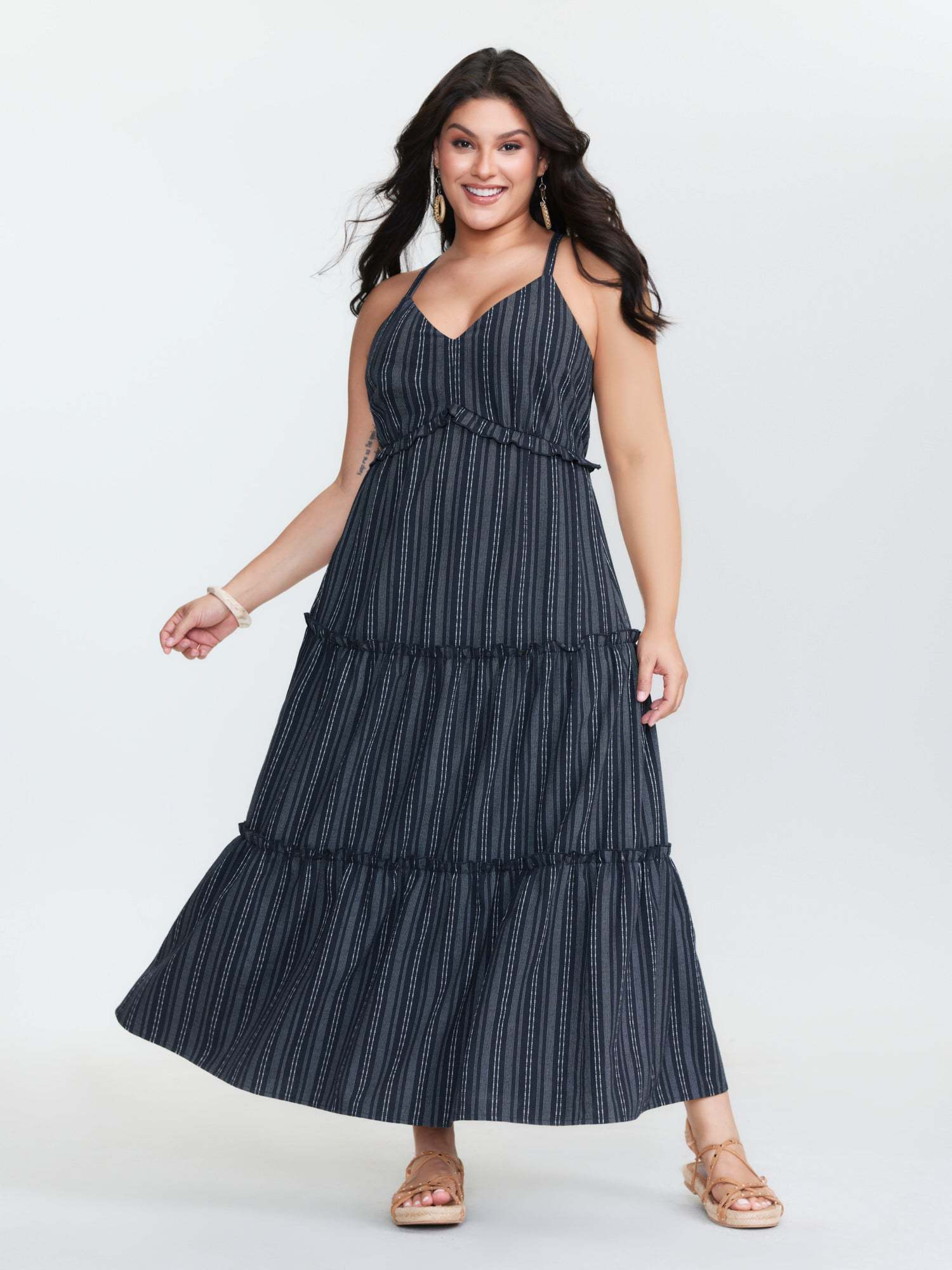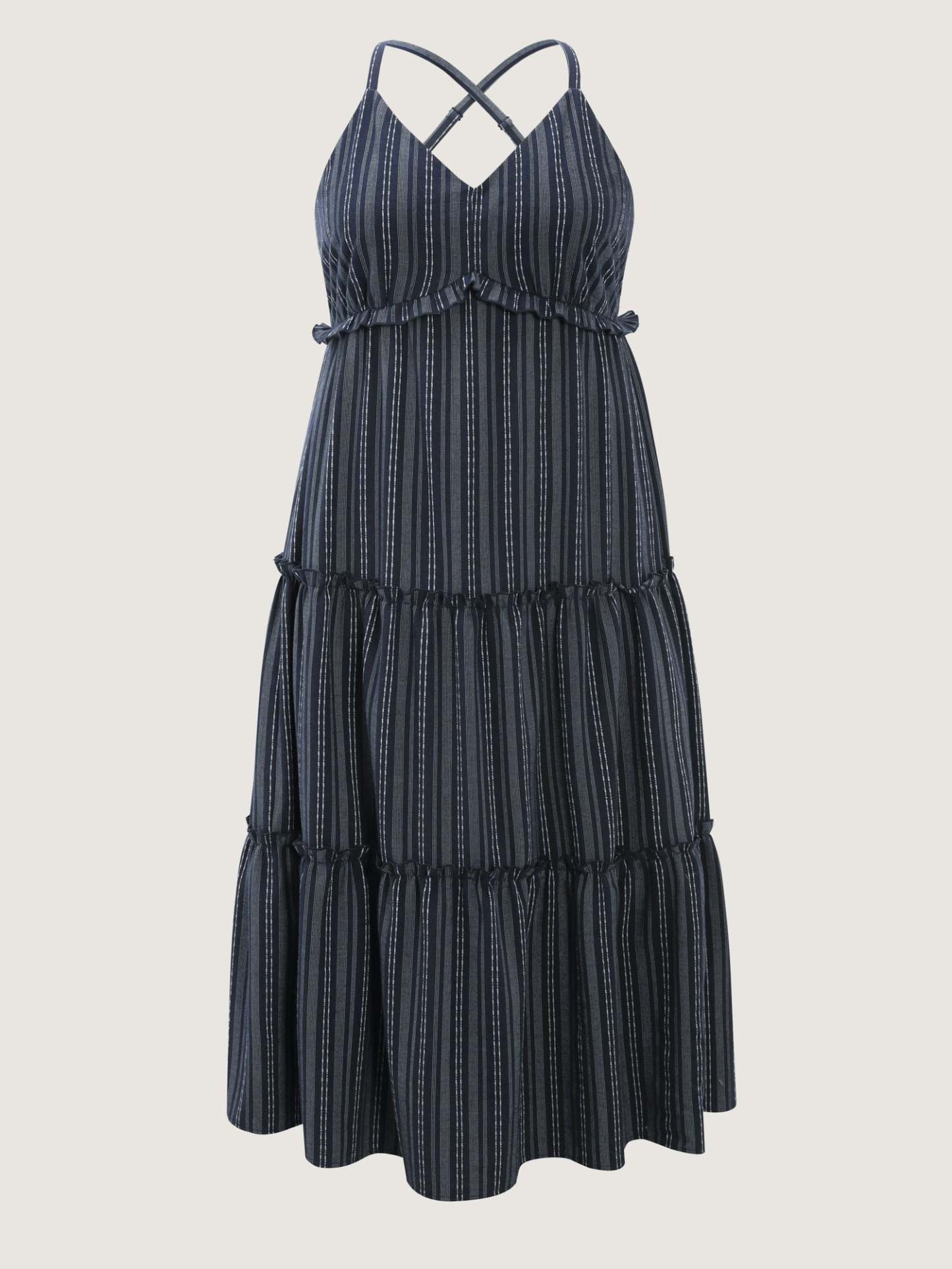 Shop Striped Linen Blend Tiered Maxi Dress now and redefine your style with confidence at BloomChic. Tailored for mid and plus-size women. This trendy Dress, sizes 10-30. You can never go wrong with BloomChic Dresses. Color:Indigo;Style_2:Boho;Neckline:Non;Sleeve Type:Sleeveless;Pattern:Stripes;Details:Frill Trim;Pocket:Side seam pocket;Belt:No-belt;Closure Type:Non