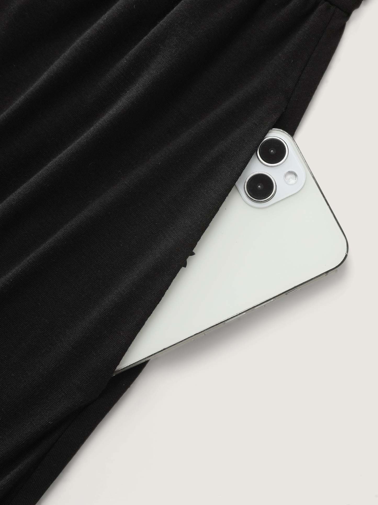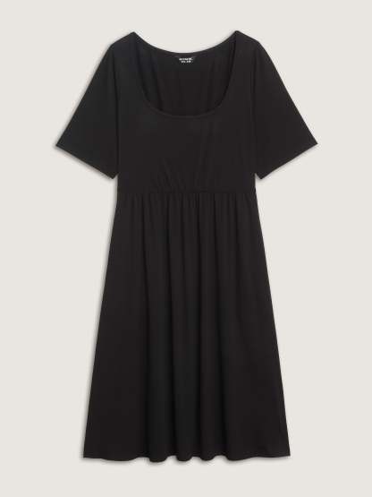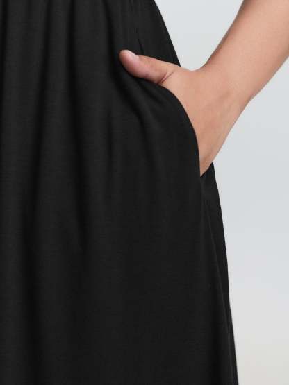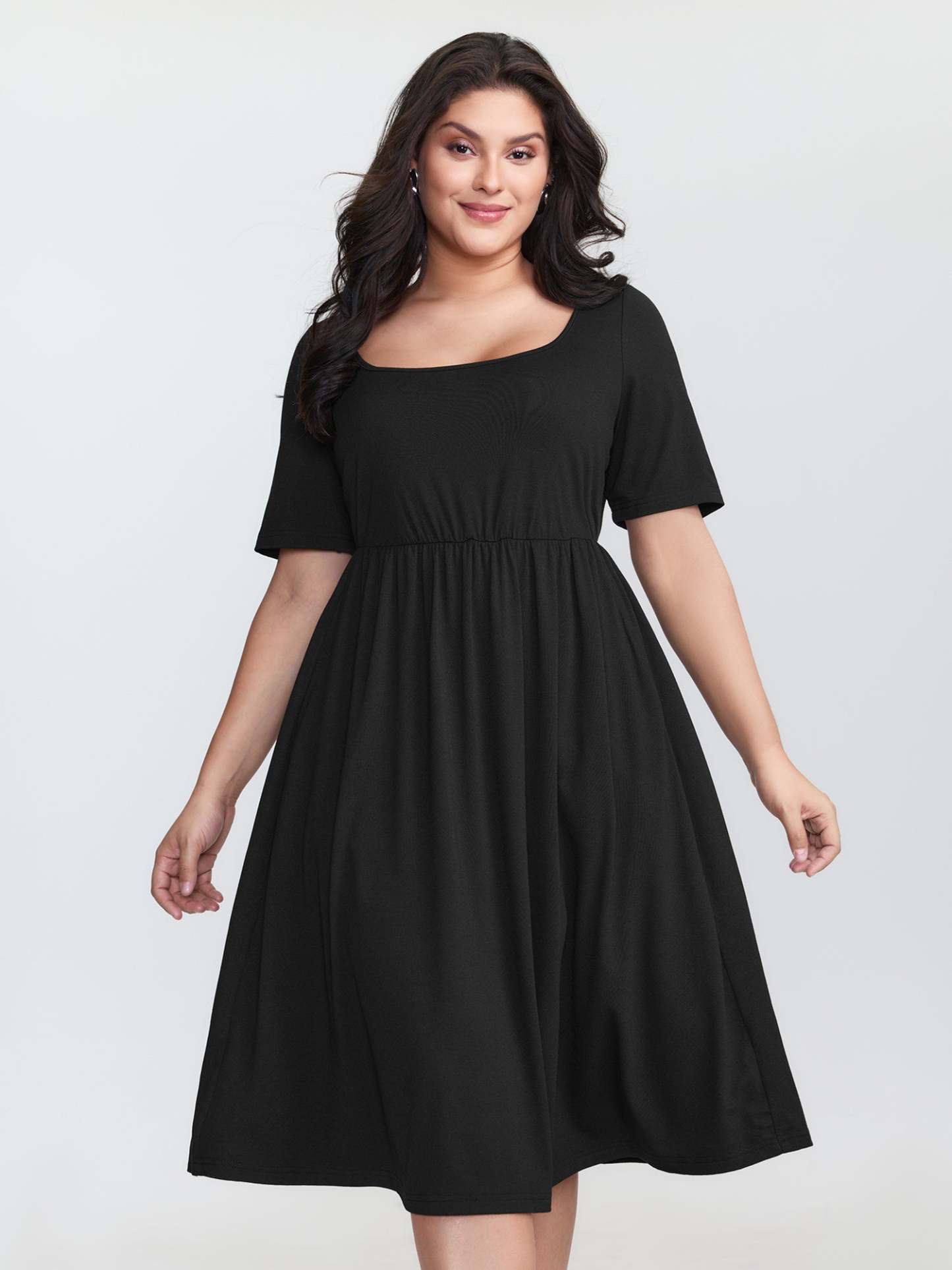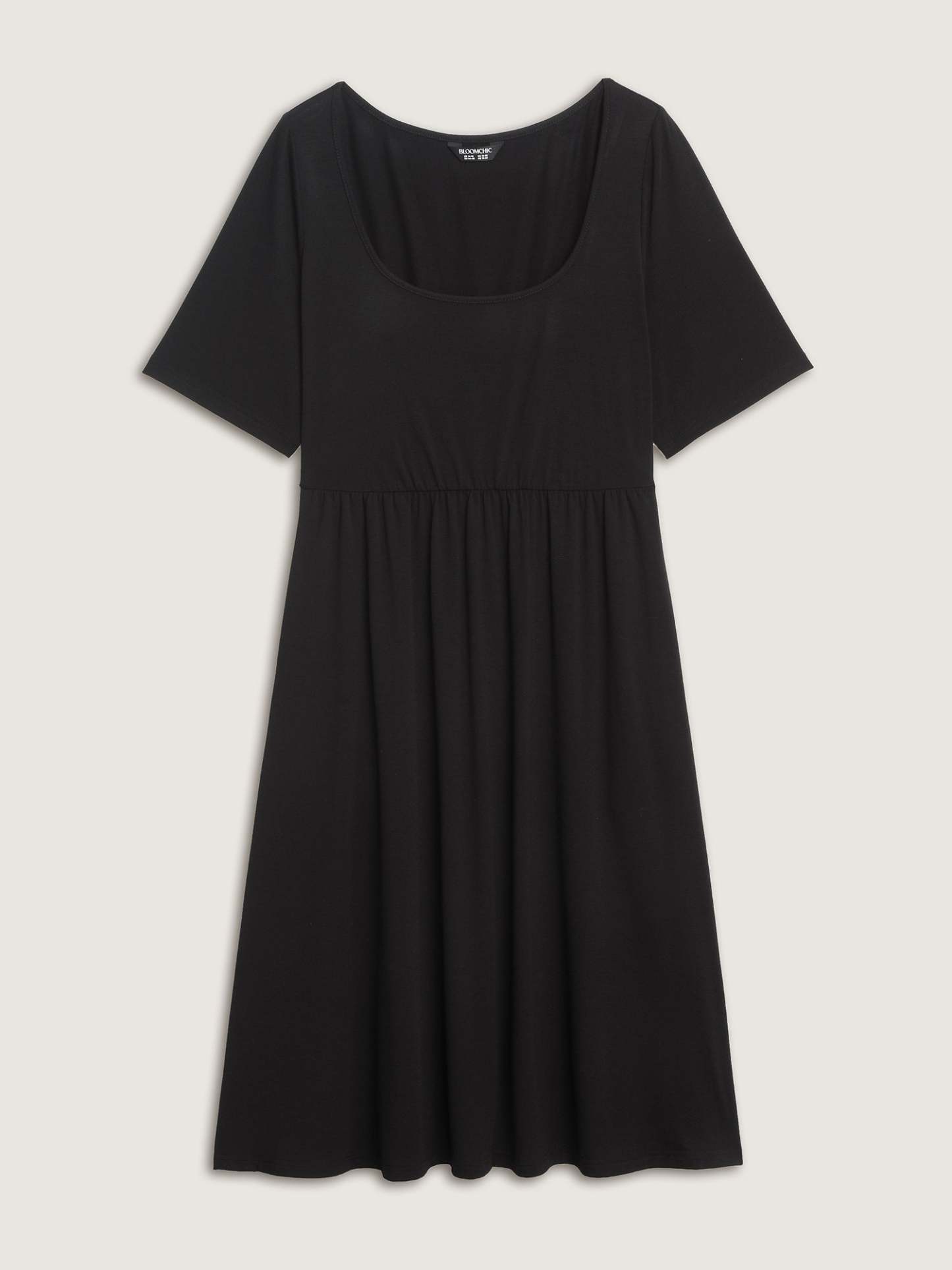 Shop Supersoft Round Neckline Plain Midi Dress now and redefine your style with confidence at BloomChic. Tailored for mid and plus-size women. This trendy Dress, sizes 10-30. You can never go wrong with BloomChic Dresses. Color:Black;Style_2:Leisure;Neckline:U-neck;Sleeve Type:Regular Sleeve;Pattern:纯色;Details:Gathered;Pocket:Side seam pocket;Belt:No-belt;Closure Type:Non